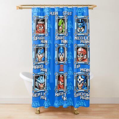 Megaman 3 Bosses Stage Select Screen Mega Man Shower Curtain